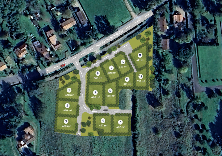 13 terrains à bâtir viabilisés de 316 m² à 486 m², Libre de constructeur dans un village attractif, proches de tous commerces et infrastructures : Boulangerie, Pharmacie, Superette, boucherie, restaurant, tabac presse, une école maternelle et une école primaire, cabinet médical.